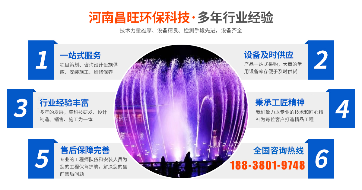 河南昌旺环保科技有限公司位于河南省郑州市*产业开发区,是一家集科技水景、**喷雾设备、环保设备、环境监测设备、物联网设备、园林绿化工程、景观照明工程、交互式喷泉工程、数字水幕工程、人工造雾工程、户外音响工程、环境治理工程设计、生产、销售、安装调试、维保于一体的*企业。公司成立以来秉承“科技创新、以人为本、诚信立业”的经营理念,以“互利发展、合作共赢”为企业宗旨,与各大中小企业建立了长期稳定的合作关系,依靠技术**、研发能力突出的特点,不断提升品牌效应,赢得了客户的一致赞誉,您的需要就是我们工作的方向,您的满意就是我们前进的动力,我们将不断创新,与时俱进,用艺术升华美,用演绎创造动情的水景故事。